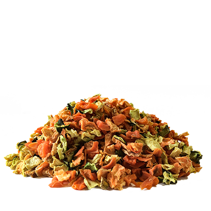 Naturalna mieszanka trzech suszonych warzyw – marchew, batat i cukinia. Idealne uzupełnienie diety BARF, wspiera florę jelitową, bogata w witaminy i minerały.