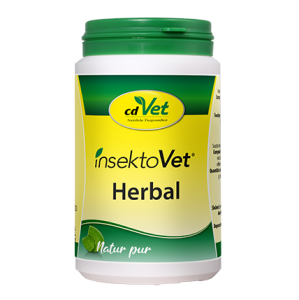 insektoVet Herbal – naturalny suplement dla psów, wspierający ochronę skóry i sierści przed insektami. Zawiera drożdże piwne, zioła i witaminy z grupy B, które poprawiają kondycję skóry i jej naturalny zapach, ograniczając atrakcyjność dla pasożytów.