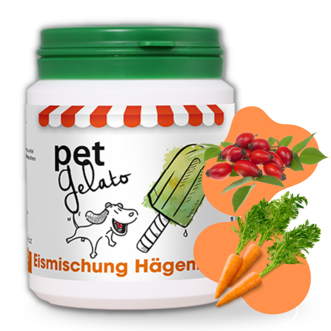 petGelato HägenRübli to naturalna mieszanka w proszku, która w kilka minut zamienia się w smaczne, pełne wartości odżywczych lody. Dzięki połączeniu marchwi, dzikiej róży i alg produkt dostarcza witamin, minerałów, elektrolitów oraz energii, które wspierają organizm zwierząt szczególnie w gorące dni.