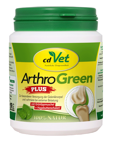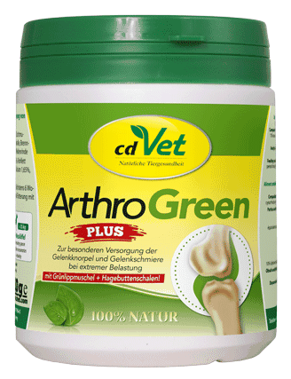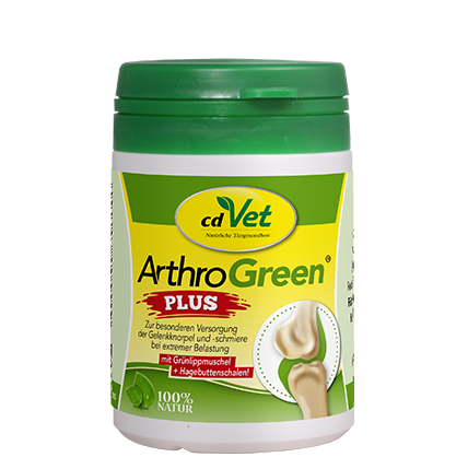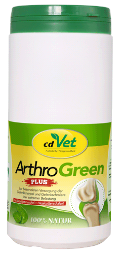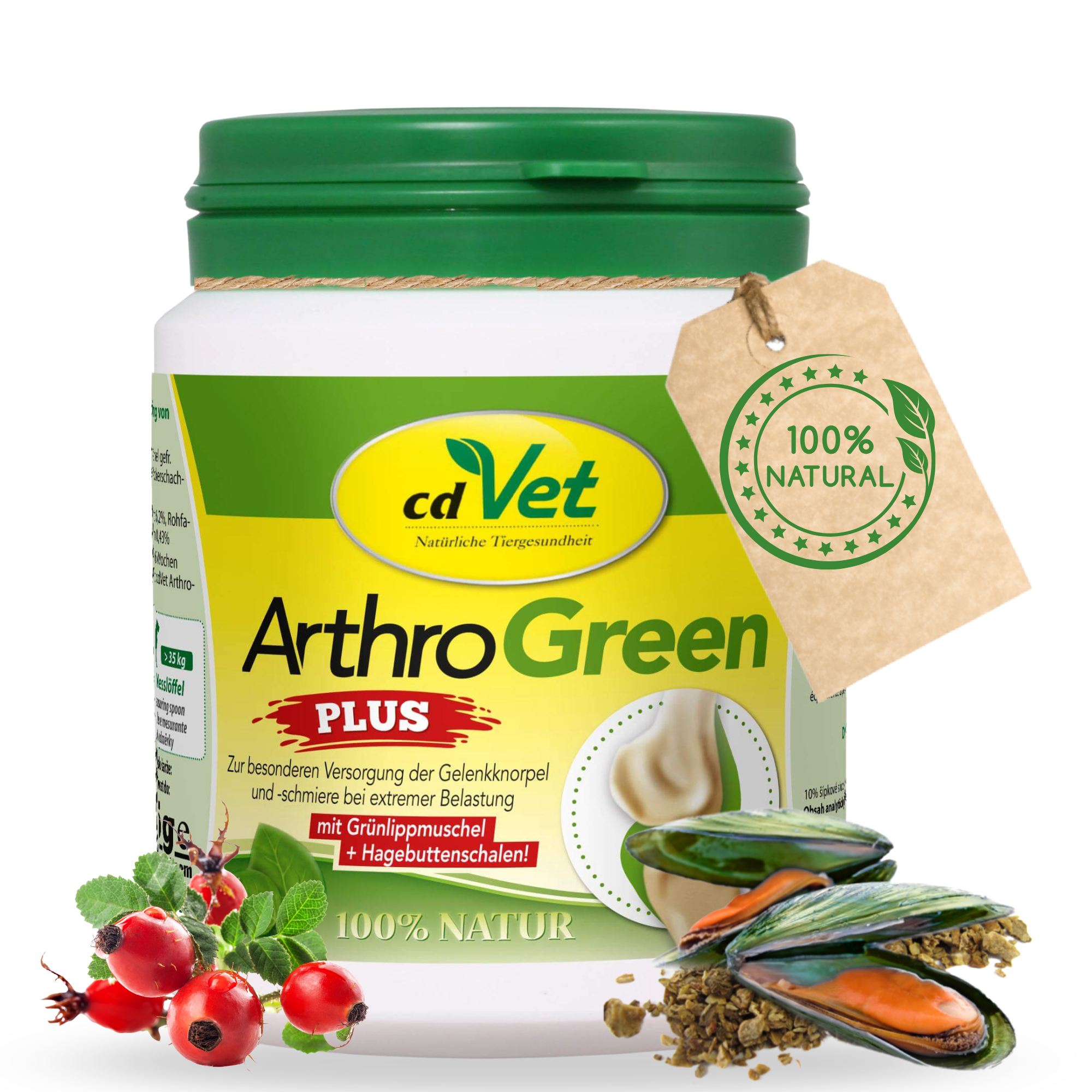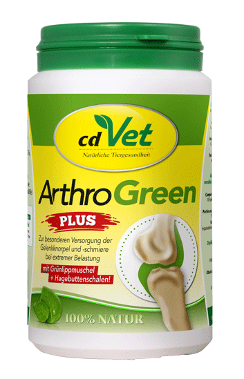 Naturalny suplement diety dla psów wzmacniający aparat stawowo-więzadłowy (chrząstki, ścięgna, więzadła, maź stawowa). Wysoka zawartość nowozelandzkich zielonych małż hodowlanych (30%) silnie regeneruje chrząstki stawowe i przyczynia się do powstawania mazi stawowej. cdVet ArthroGreen plus jest bogaty w naturalne witaminy, mikroelementy i pierwiastki śladowe niezbędne w procesie syntezy kolagenu. Specjalna mieszanka wielu ziół poprawia wydolność mięśni oraz stabilizację i wytrzymałość włókien kolagenowych. Obecność czarciego pazura wzbogaconego dodatkiem owoców dzikiej róży wzmacnia działanie przeciwzapalne i przeciwbólowe.