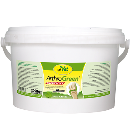 ArthroGreen Sport posiada wysoką zawartość witaminy C pochodzącą z pietruszki, dzikiej róży oraz owoców rokitnika zwyczajnego. Odgrywa bardzo ważną rolę dla wydzielania hormonu wzrostu w organizmie, dlatego jest niezbędna u rozwijających się młodych zwierząt. Witamina C jest bardzo ważna dla biosyntezy kolagenu, a więc wytrzymałości chrząstek i kości.
