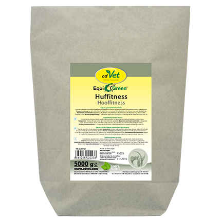 EquiGreen Huffitness - naturalny, ziołowy suplement diety dla koni wzmacniający kopyta i stymulujący ich prawidłowy rozwój. Zaopatruje organizm w naturalną witaminę B oraz dostarcza niezbędne mikroelementy, witaminy i aminokwasy poprawiając tym samym przyswajanie potrzebnego materiału odżywczego w jelitach, wpływając tym samym na prawidłowe funkcjonowanie skóry i jej wytworów. Stosowanie EquiGreen Huffitness zapewnia silne i zdrowe kopyta oraz gęstą i lśniącą sierść.