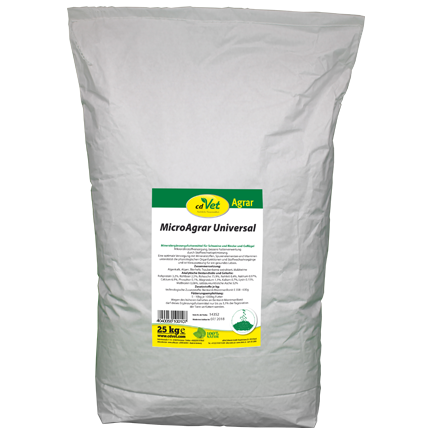 Braki w żywieniu zwierząt mogą często prowadzić do strat. Cały organizm zwierzęcy może być również obciążony nadmierną podażą syntetycznych dodatków i toksyn (trucizn grzybiczych). Aby przeciwdziałać pojawiającym się problemom, takim jak spadek wydajności, stworzyliśmy MicroAgrar Universal na podstawie wypróbowanych i przetestowanych produktów cdVet. MicroAgrar Universal zapewnia optymalne zaopatrzenie w minerały, pierwiastki śladowe i witaminy, które wspierają fizjologiczne funkcje narządów i procesy metaboliczne oraz są warunkiem zdrowego życia.