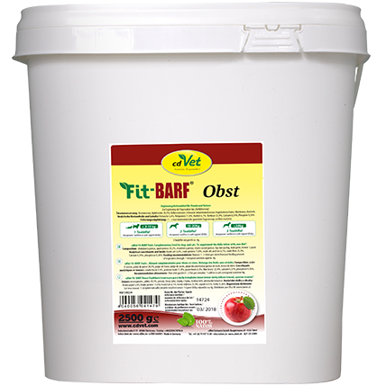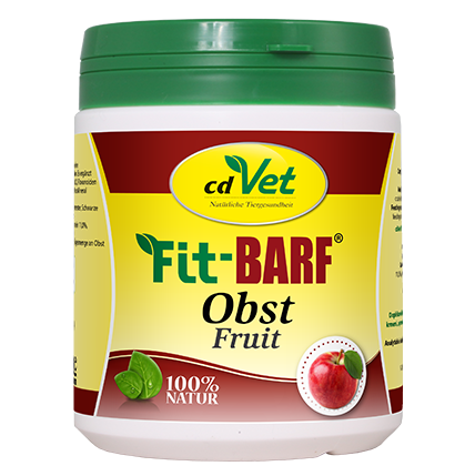 Fit-BARF Obst został skomponowany z wyselekcjonowanych składników, w celu zrównoważenia diety psów i kotów karmionych surowym mięsem. Uzupełnia zapotrzebowanie na witaminy (niacyna (B3), ryboflawina (B2), kwas foliowy, E, A, K, C), flawonoidy (polifenoli), jak również włókna. Stosowany w połączeniu z Fit-BARF MicoMineral stanowi zdrową podstawę diety BARF.