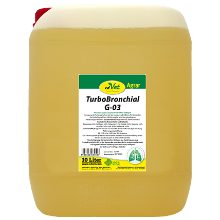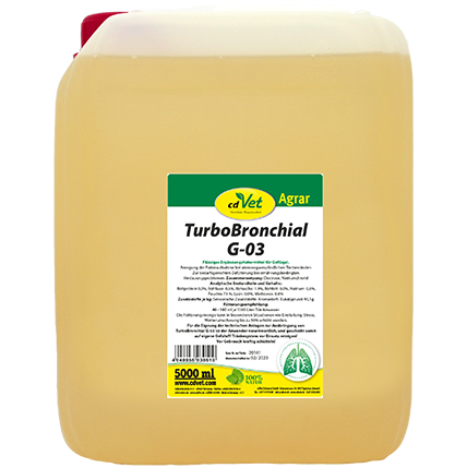 Większość firm ma największe rezerwy wydajności w drogach oddechowych. Optymalny stan dróg oddechowych, a tym samym lepsze oddychanie, może pozytywnie wpływać na spożycie i wykorzystanie paszy. TurboBronchial G-03 zawiera substancje aromatyczne (silnie skoncentrowane olejki eteryczne, olejek eukaliptusowy itp.) O czysto naturalnym pochodzeniu. W naturze zwierzę wchłaniało olejki eteryczne przez świeże rośliny. W budynkach inwentarskich nie jest to lub prawie wcale nie jest gwarantowane.