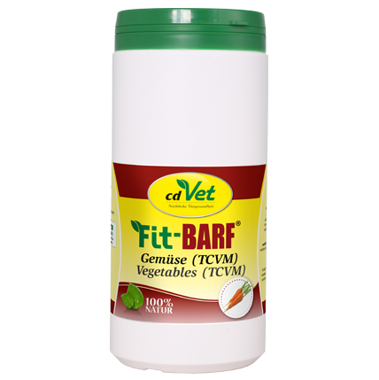 Fit-BARF Gemüse (TCVM) to wolna od zbóż mieszanka warzyw, która zapewnia różnorodność i równowagę w planie diety BARF. W przeciwieństwie do zachodniego sposobu myślenia w żywieniu ważny jest nie tylko rodzaj pokarmu i jego wartości witaminowe, ale również jego efekt cieplny oraz którą z 5 przemian reprezentuje: drzewo, ogień, ziemię, metal czy wodę. Zarówno żywność jak i zioła są podzielone według efektów energetycznych, termiki, koloru, smaku i zapachu związanych z danym obwodem funkcjonalnym.