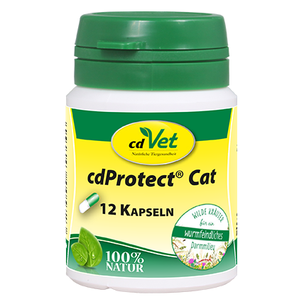 Aby mieć mniej powodów do stosowania chemicznych lekarstw na robaki (leki), jelita zwierzęcia powinny być wspomagane odpowiednimi ziołami zawartymi w cdProtect® Cat.