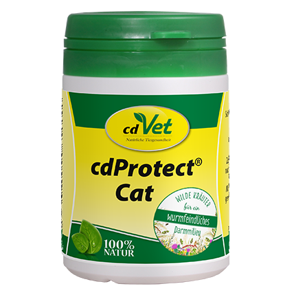 Oprócz zbilansowanej diety, należy stosować dodatek paszowy cdProtect® Cat, który rekompensuje brak składników ziołowych, takich jak saponiny, substancje gorzkie i garbniki. Ponadto wielu ekspertów w dziedzinie parazytologii zaleca sprawdzanie populacji robaków zwierzęcia poprzez regularne monitorowanie próbek kału.