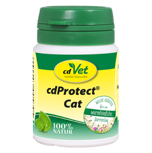 cdProtect® Cat został opracowany z myślą o specjalnych potrzebach żywieniowych, które pojawiają się w związku z inwazją pasożytów jelitowych. Brak składników ziołowych, takich jak saponiny, substancje gorzkie i garbniki, może sprawić, że nasze zwierzęta będą nadmiernie podatne na robaki. W przeciwieństwie do innych gatunków zwierząt żyjących na wolności, często nie mają możliwości wchłaniania wymienionych substancji poprzez spożywanie odpowiednich roślin i ziół. Ale to właśnie te substancje pomagają ich dzikim krewnym uniknąć nadmiernych, patologicznych robaków.
