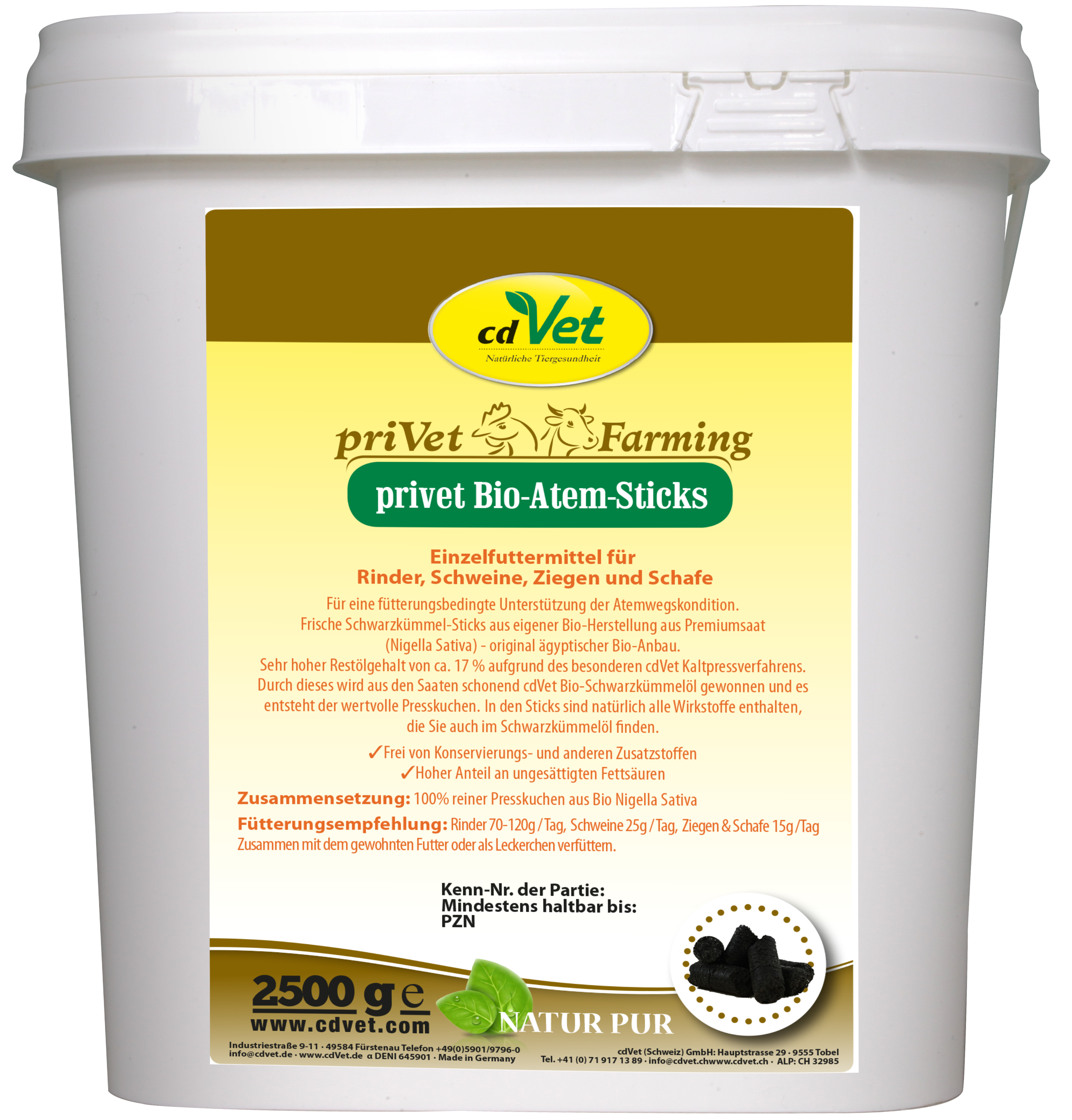 - Bardzo wysoka resztkowa zawartość oleju 16 - 17% dzięki specjalnemu procesowi tłoczenia na zimno cdVet